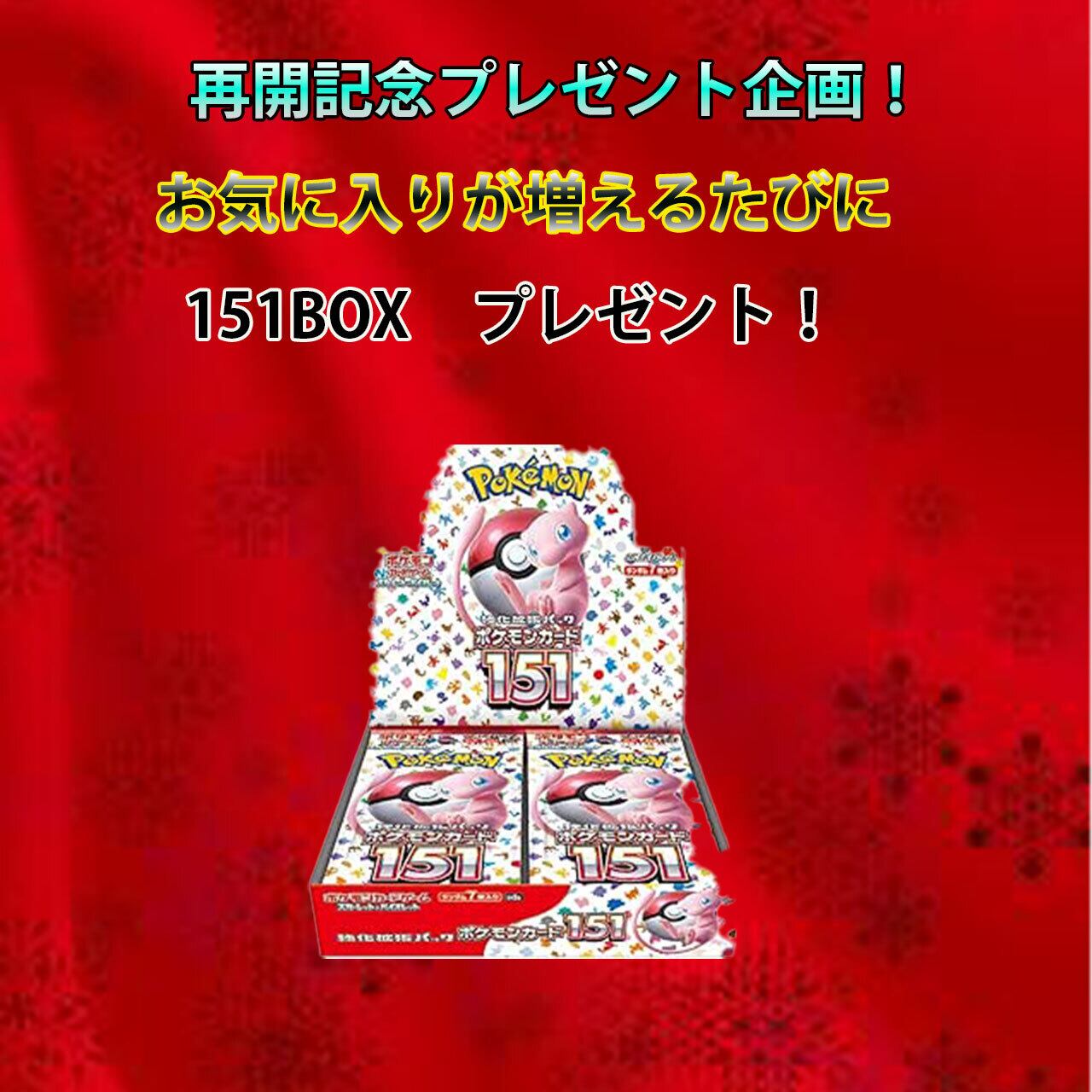 再開を記念して、特別なプレ企画を実施します!お気に入りが増えるたびに、なんと151boxをプレゼントします!この機会にお楽しみください!